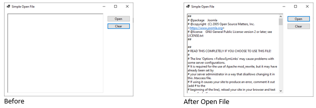 Jika kondisi memenuhi (dialog = Ok, File = eksis), maka berikutnya kita akan membuat instance FileStream baru pada variabel FileReader dengan informasi lokasi file dan mode pembukaan file.